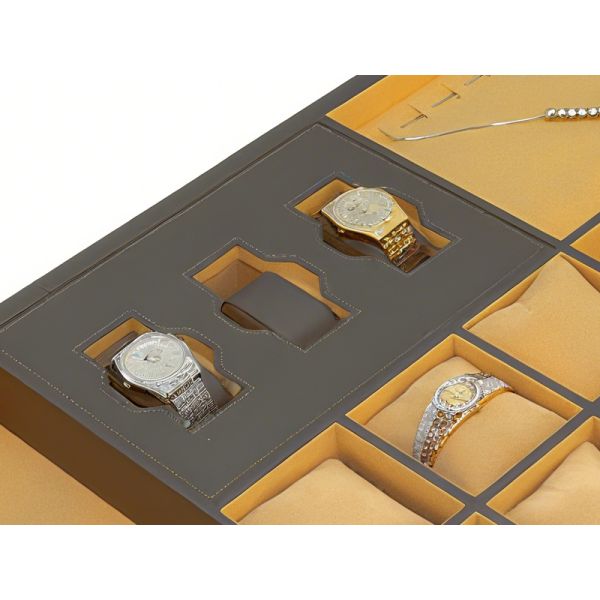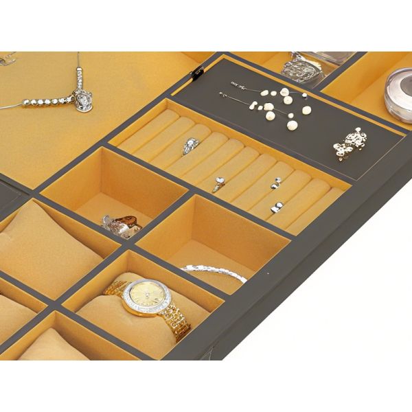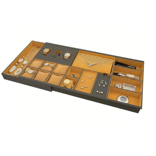 YG-H028 Modular Jewelry Drawer Organizer Tray, 700x402x55mm Customizable Wardrobe Storage Box with 18 Compartments, Handmade with PVC Leather & Velvet Lining