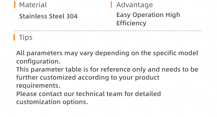 Material of the whole machine | The whole frame is made of SUS304 food-grade stainless steel, which