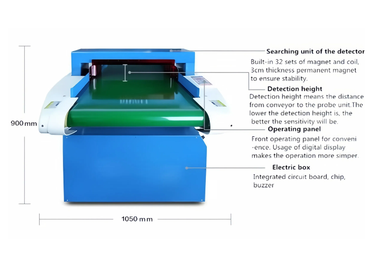 High-Speed High-Sensitivity PLC Controlled Conveyor Belt Needle Detector for Knitting Packaging Textiles Metal Detection