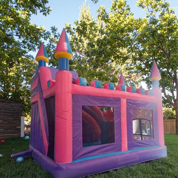 Commercial Pink and Purple Bounce House Inflatable Trampoline with Dry Slide Inflatable Princess Bouncy Castle for Kids