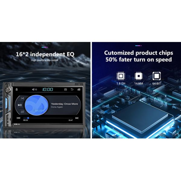 【FM RDS Radio】The Car Audio Receiver with stable FM RDS radio receiver. FM Frequency Range:87.5-108MHz. FM radio with high-quality stereo, which can search channels in full-automatic ways, semiautomatic way and acurate adjustment way (RDS is optional according to different configurations)
