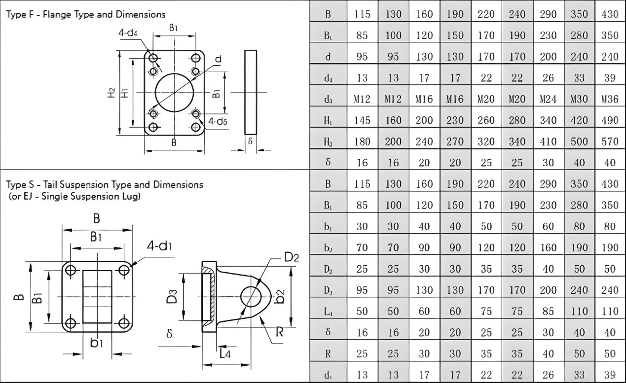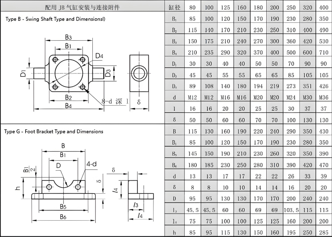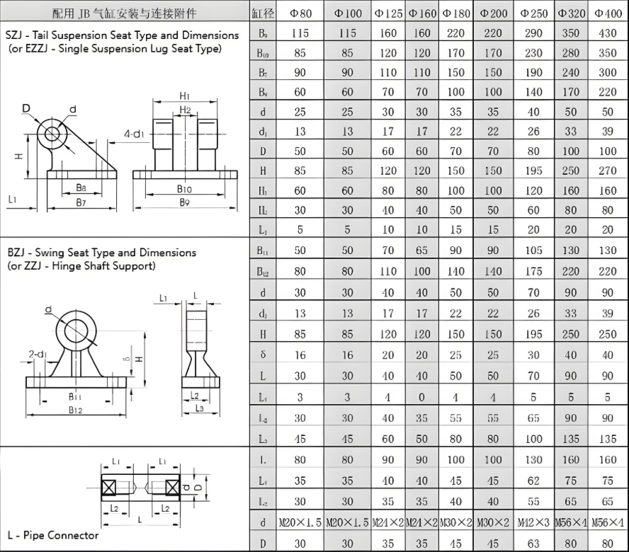 | Cylinder Bore(mm) | 80 | 100 | 125 | 160 | 180 | 200 | 250 | 320 | 400 |