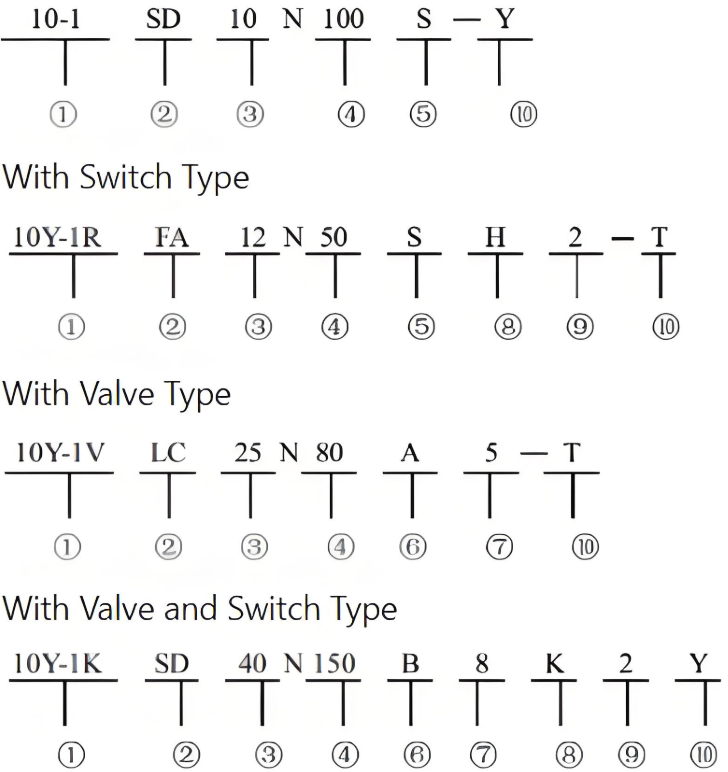 | Variety | Standard Type | With Switch Type | With Valve Type | With Vave and Switch Type |