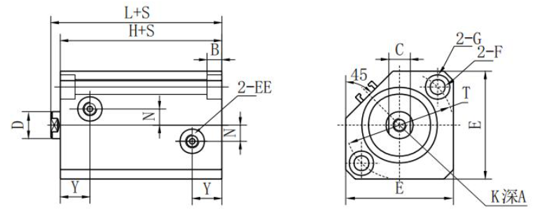Outline Drawing of QGY (D) Front Spring Single-acting Thin Cylinder