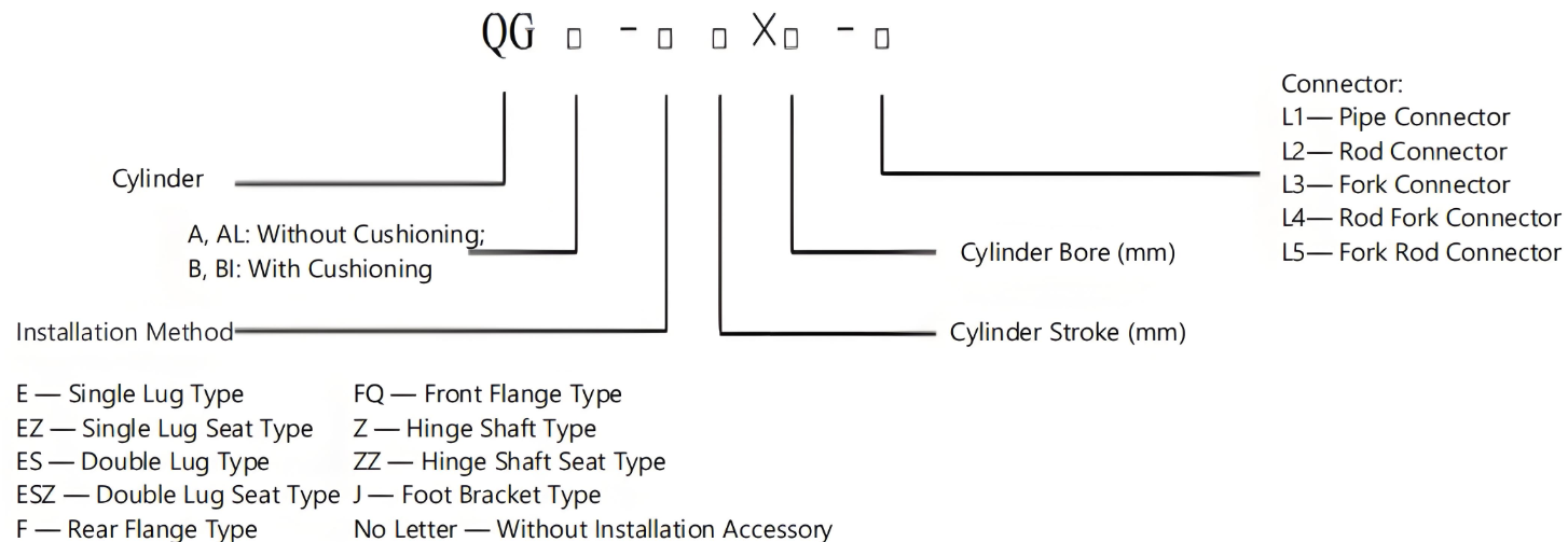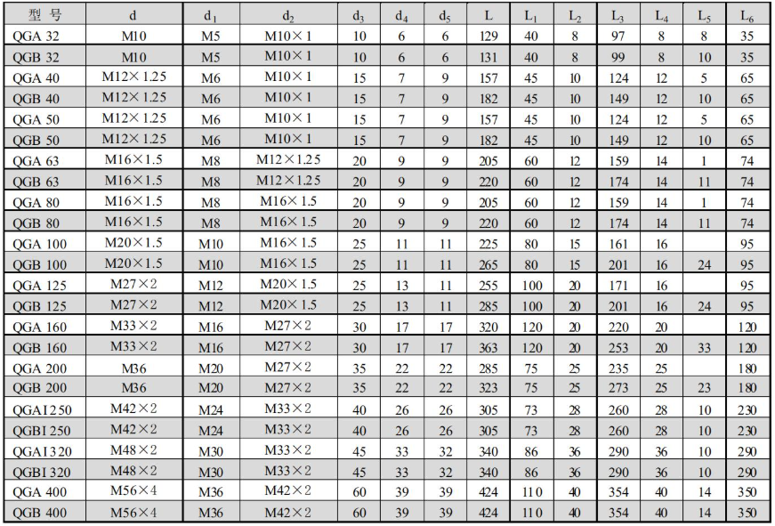 3.For cylinders with a bore diameter of Φ32~Φ100, the front and rear end caps are made of aluminum alloy, and the cylinder barrel is a precision aluminum tube with the inner hole treated by hard anodic oxidation. For cylinders with a bore diameter of Φ125~Φ400, the front and rear end caps are made of cast iron, and the cylinder barrel is a precision seamless steel tube with the inner hole hard chrome plated.