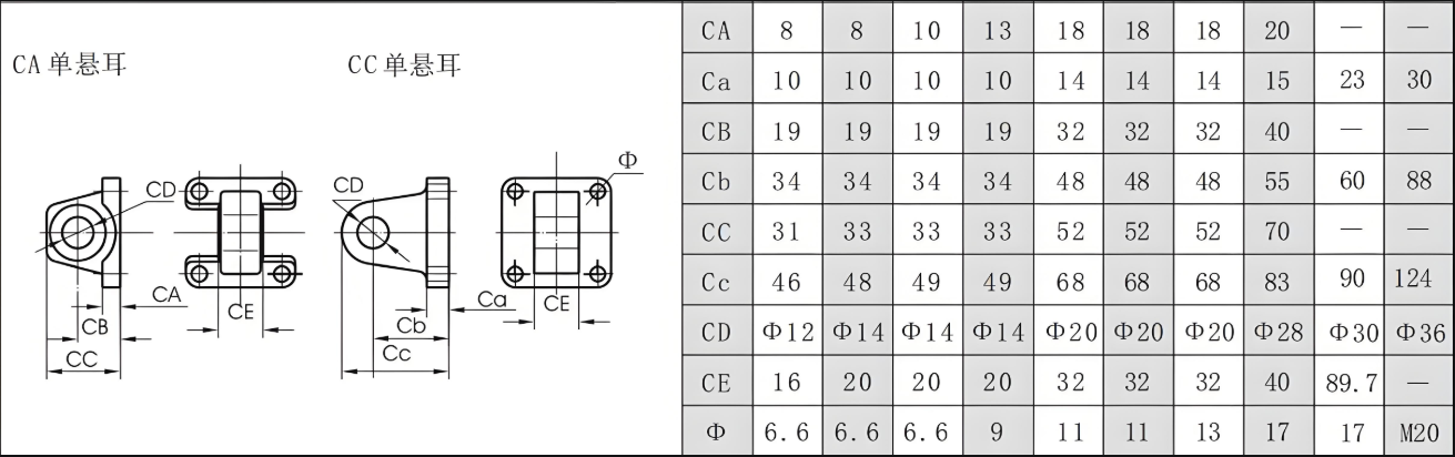 | CA Type | Single Lug Type | TC Type | Front Cylinder Center Trunnion Type |