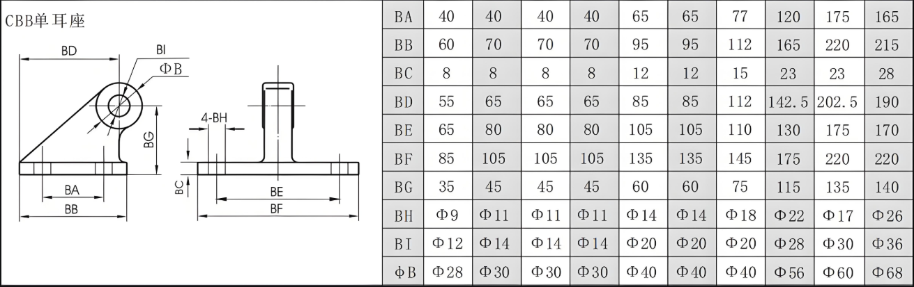 | CBB Type | Double Lug Pedestal Type | TA Type | Front Trunnion Type |