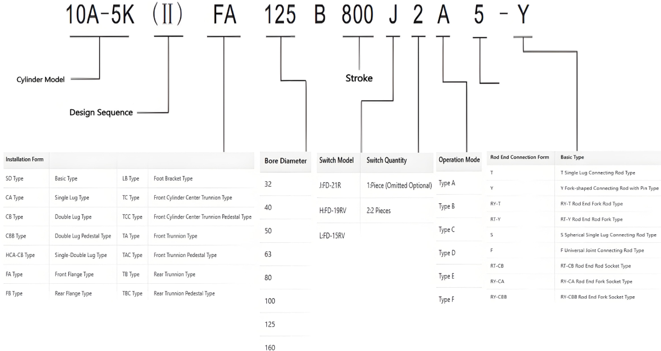 | Installation | Cylinder Model | 10A-5R | 10A-5V | 10A-5K | |||||||||||||||