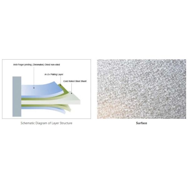 Al-Zinc Coating: 55% al, 43.5% zinc,1.5% Si