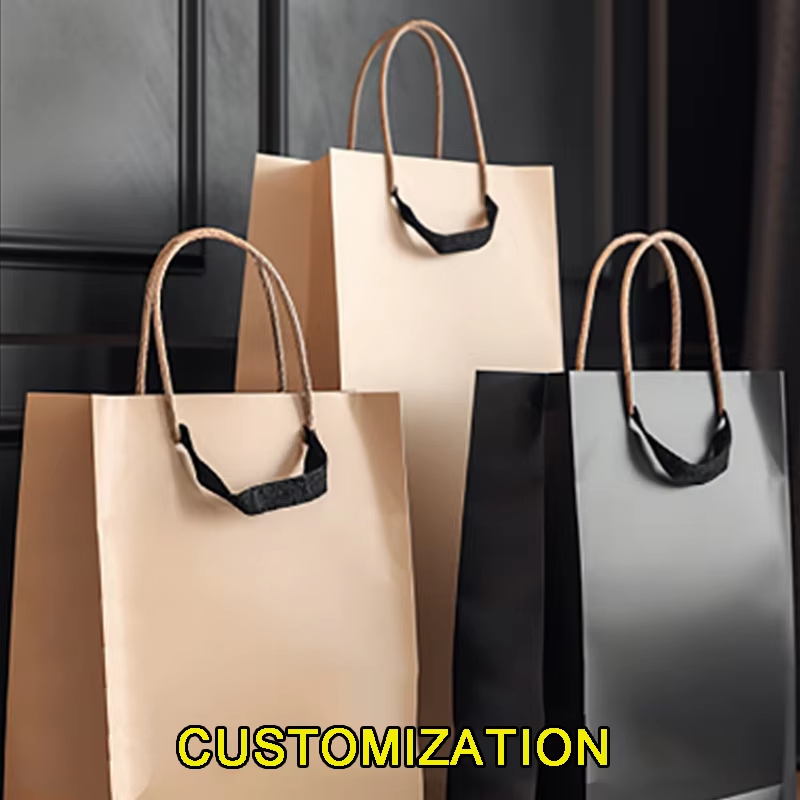 Custom Takeout Grocery Paper Bags With Handles Recyclable Paper Party Gift Candy Merchandise Paper Bags