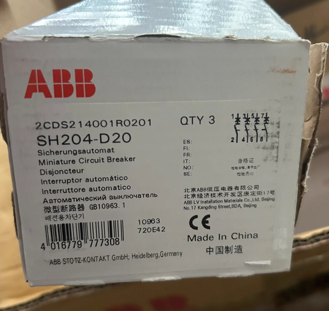 ABB SH204 is a 4-pole Miniature Circuit Breaker (MCB) in the ABB S200 series, specifically designed for overload and short-circuit protection in residential, commercial and light industrial power distribution systems. This product adopts a thermal-magnetic tripping mechanism, featuring high breaking capacity, compact structure and outstanding reliability. It is widely used in terminal distribution boxes, control cabinets, building automation systems and OEM equipment, providing comprehensive electrical safety protection for personnel and equipment.