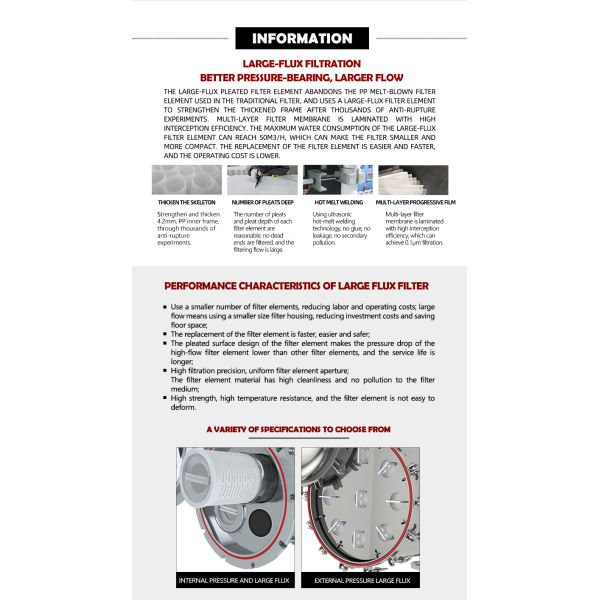 Model | Filter cartridge | cartridge Qty | Connection | Max.Flow (m3/h) | Working Pressure(MPa) |