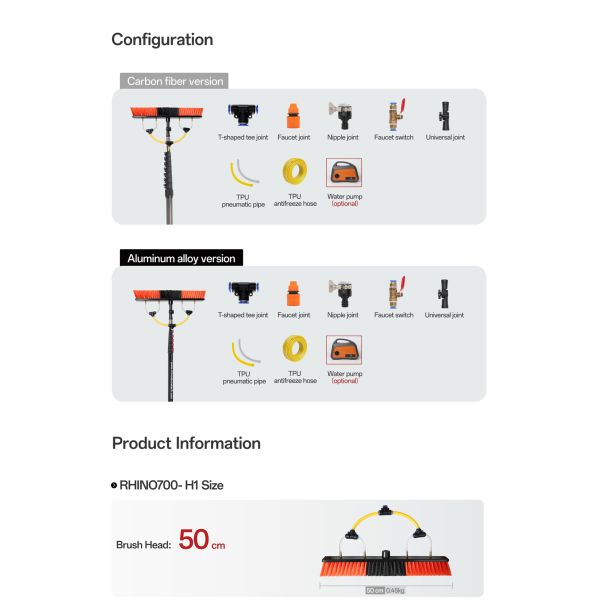 Manual Water Fed Pole Telescopic Solar Panel Cleaning Brush RHINO700-H1