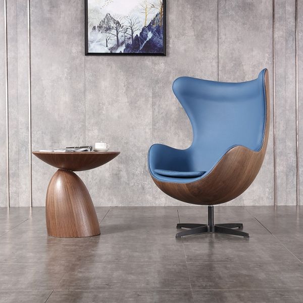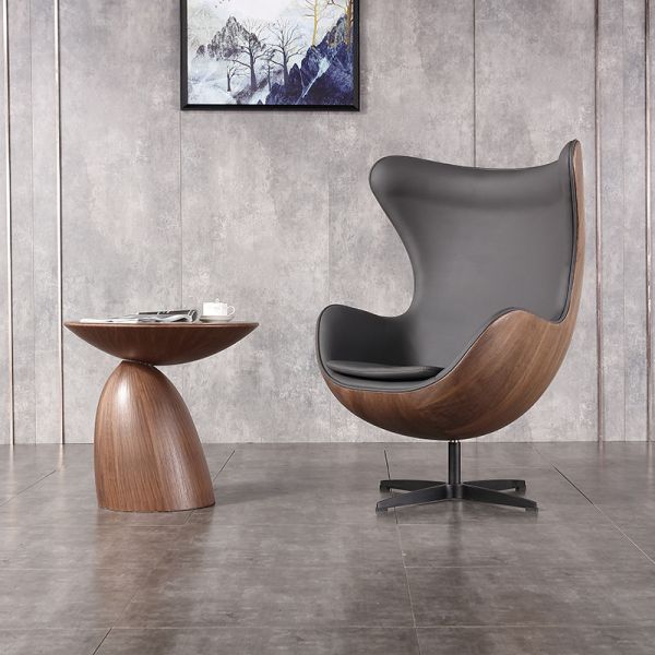 Living Room Furniture Wood Grain Round Chair Nordic Vintage Leisure Chair with Leather Fabric and Wood Leather Tea Table