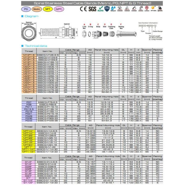 | Specs: | M12x1.5 ~ M50x1.5 |