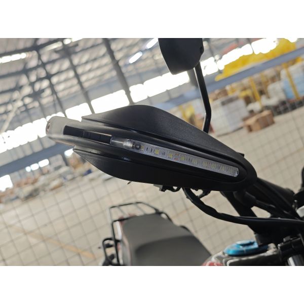 Brazilian off-road generation, CG150CC engine, Youli Keihin carburetor, maintenance-free battery, straight front shock absorber, single rear shock absorber without bracket, ordinary instrument, front and rear mesh wheels, deep-tooth tires (front 90/100-19, rear 110/100-17), reinforced square tube flat fork, high-temperature painted muffler, front disc brake, rear drum brake, aluminum alloy rear handrail.
