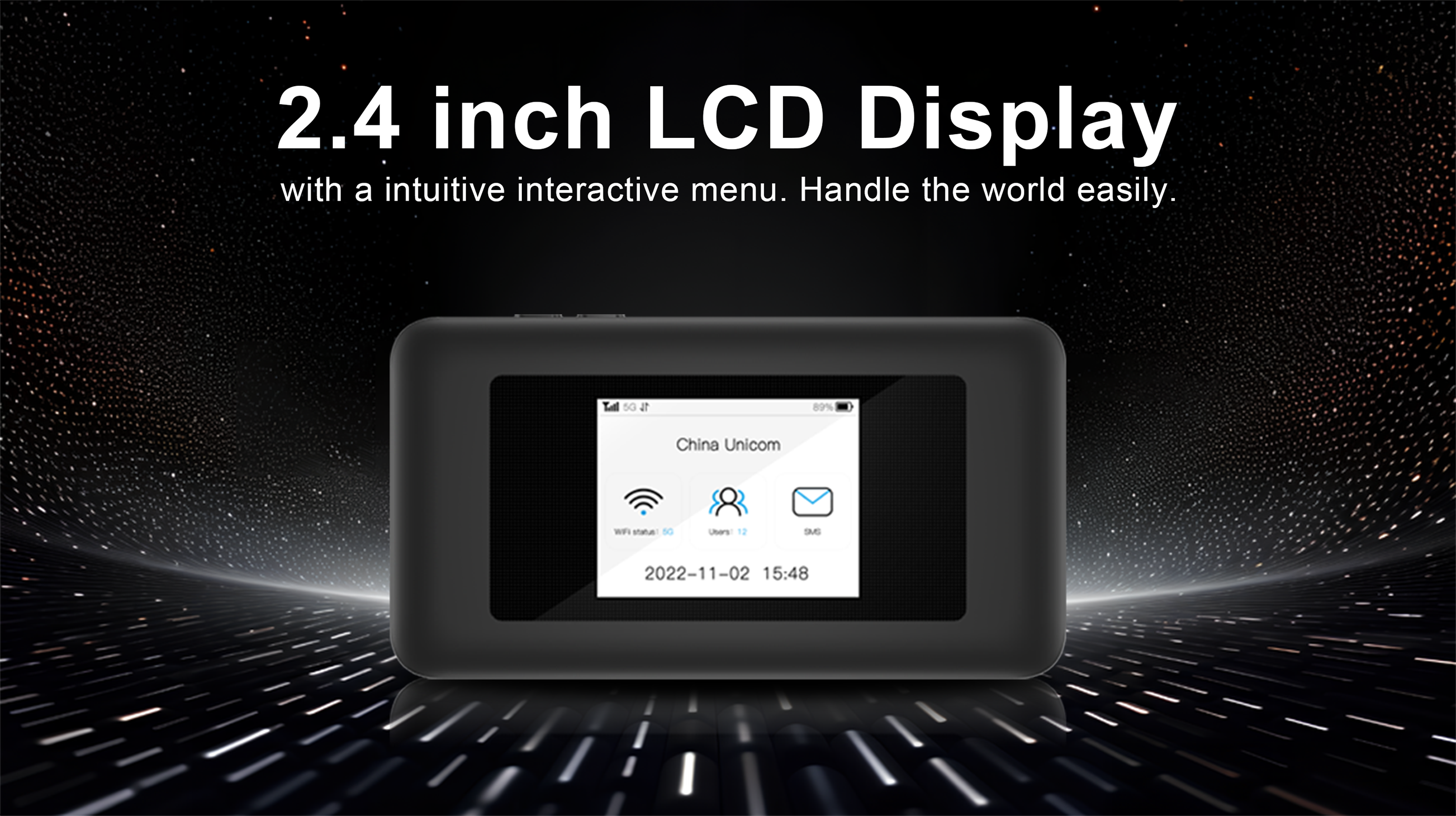 Main Features: · 16 devices · 5000 mAh battery and working time more than 15 hours · components some USA,Korea,Japan or Taiwan brands · Wifi Mimo faster speed and stable performance · Supply to operators,agent,distributors,etc. · TR069,FOTA supported,easy to manage the device Specifications: · Model No. : MF510 · Wireless chipset : MT6631 · Memory : 2 Nand flash/8 Lpddr4 · Wi-Fi speed : 300Mbps · ion : 16 Wi-Fi ions · Buttons : Power, WPS, Reset(PIN hole) · Mimo for Wifi : 2.4G 802.11.b/g/n MIMO 1*1; 5G 802.11ac MIMO 1*1; · 2.4 inch TCM Display · Bands : EU Version: 5G NR: