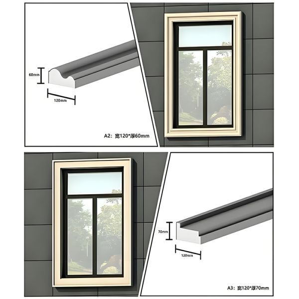 Stucco Foam Window Trim uses polymer mortar bonding without anchor bolts, avoiding corrosion issues. It can also be cut and spliced on-site, with low cost and short construction period. In addition, it is weather resistant and environmentally friendly, with features such as fire resistance (B2 level), waterproofing, crack prevention, and thermal insulation, meeting the standards of green building materials.