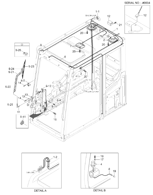 4 Cab parts: operator’s cab, wiring harness, monitor, controller, seat, door etc.