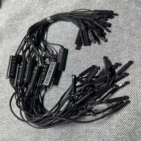 In addition to retail use, these Garment Swing Tags strings are perfect for craft fairs, handmade clothing vendors, and designers who want to add a professional touch to their creations. The simple yet elegant string style allows for easy tying and removal, making it convenient for customers and staff alike. Furthermore, the black color adds an element of sophistication and can coordinate well with custom-branded tags or logos.